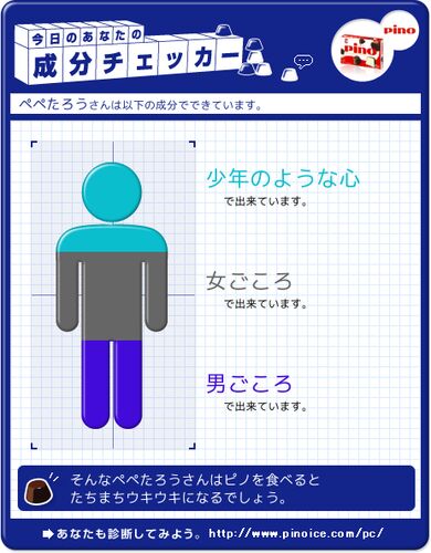 ピノのキャラメル味食べた なんか占いができるらしいからやってみた……微妙だ…ピノ ホームページ